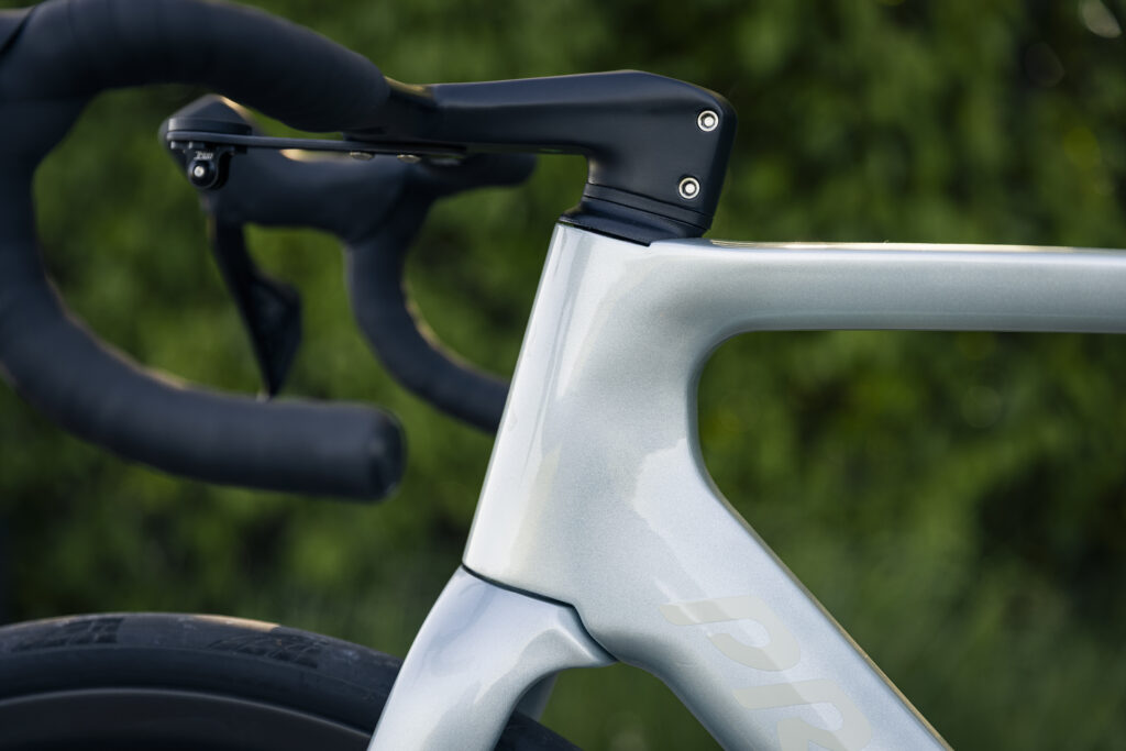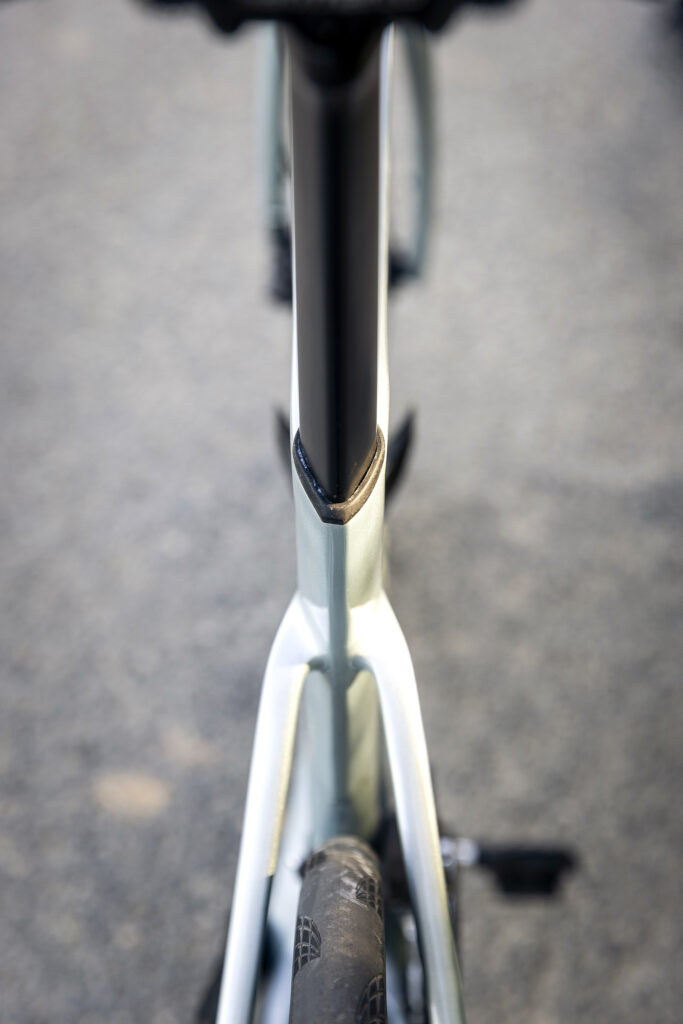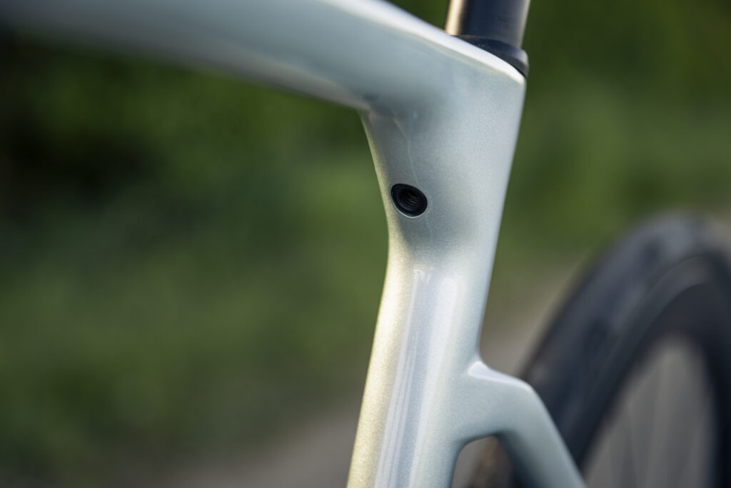 Fælles for alle udstyrsmodeller er elektroniske gear og enten fuldt integrerede kabler eller en næsten lige så elegant løsning, hvor kablerne går ind i spaceren over kronrøret. Der er derfor ingen synlige kabelhuller på rammen, og på modellen i farven “Ice Blue” giver det et meget flot og rent udtryk.
