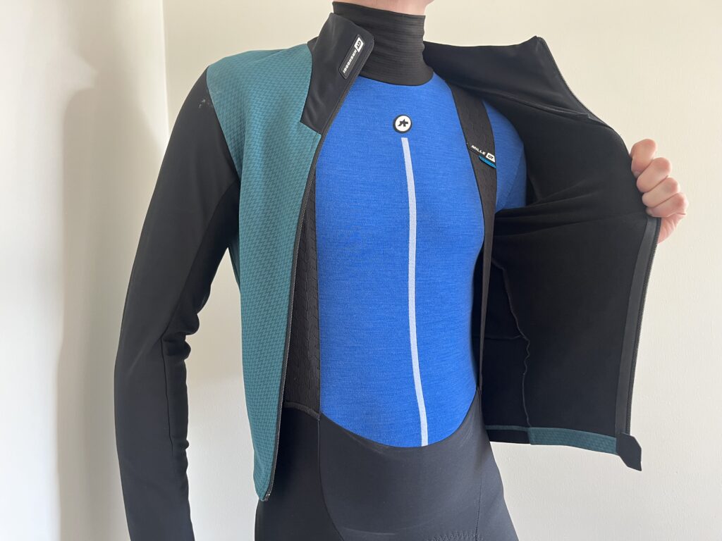 Indvendig er jakken foret med et materiale, som ifølge ASSOS arbejder aktivt for at holde en stabil temperatur. Det giver en jakke, der tyngde mæssigt befinder sig et sted mellem en klassisk tung vinterjakke og en let vinterjakke. Men det fungerer og jakken giver plads til at have et ekstra lag på indenunder, hvis der er behov for det.