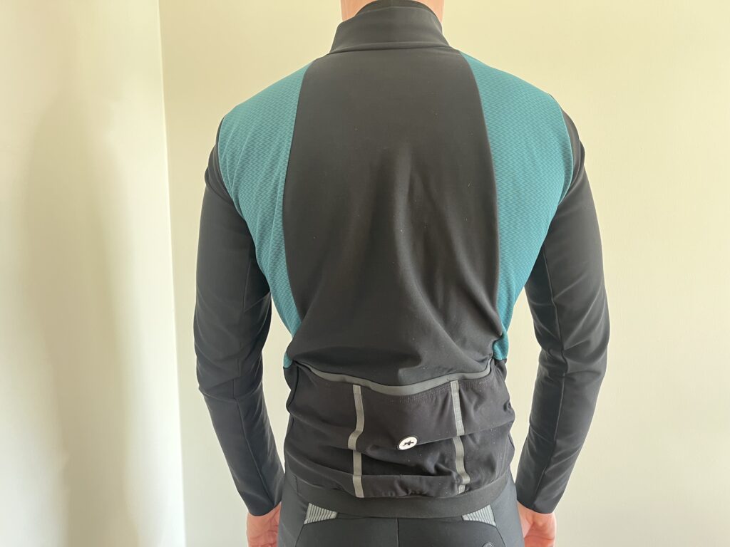 Jeg har altid synes der var noget lækkert over materialets fornemmelse hos ASSOS og Hashoogi-jakken er ingen undtagelse. Membranen på forsiden af jakken er både vind- og vandafvisende og brydes på ryggen af et smalt og ventilerende panel.